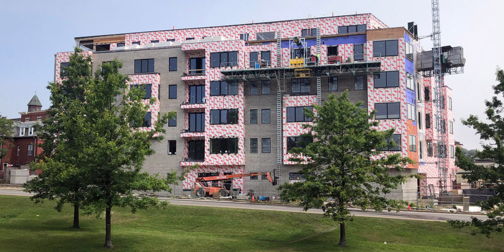 NewHeight Group is pleased to report that construction of Verdante at Lincoln Park has continued without interruption throughout the COVID lockdown, and the project remains on track to welcome the first occupants into their new homes before the end of this year. Those driving by will notice grey brickwork going up along the Franklin Street façade, soon to be followed by fiber cement which will accent the bump-outs with a natural wood tone. The exterior of the north façade of the building is being finished with fiber cement siding. Drywall crews have finished hanging the second-floor walls and are now busy on the third floor. Electricians, plumbers, and HVAC professionals are all working on the higher floors placing and testing the systems that will be hidden in the walls and ceilings.